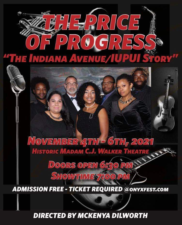 The Price of Progress: The Indiana Avenue/IUPUI Story is a two act play about the rich history of Black culture & the evolution of an urban university in the same Indianapolis community. Indiana Avenue stretched from the Central Canal and White River in Naptown. As early as the 1800s, the area was a hub of black culture and achievement. From 1930s through 1950s some of the nation’s most prominent jazz clubs and restaurants lined Indiana Avenue – filled with the music that attracted a “who’s who” of American jazz greats like Nat “King” Cole, Ella Fitzgerald, Billie Holiday, Ray Charles, Sarah Vaughn, Billy Eckstine, Duke Ellington, Count Basie and Dinah Washington.