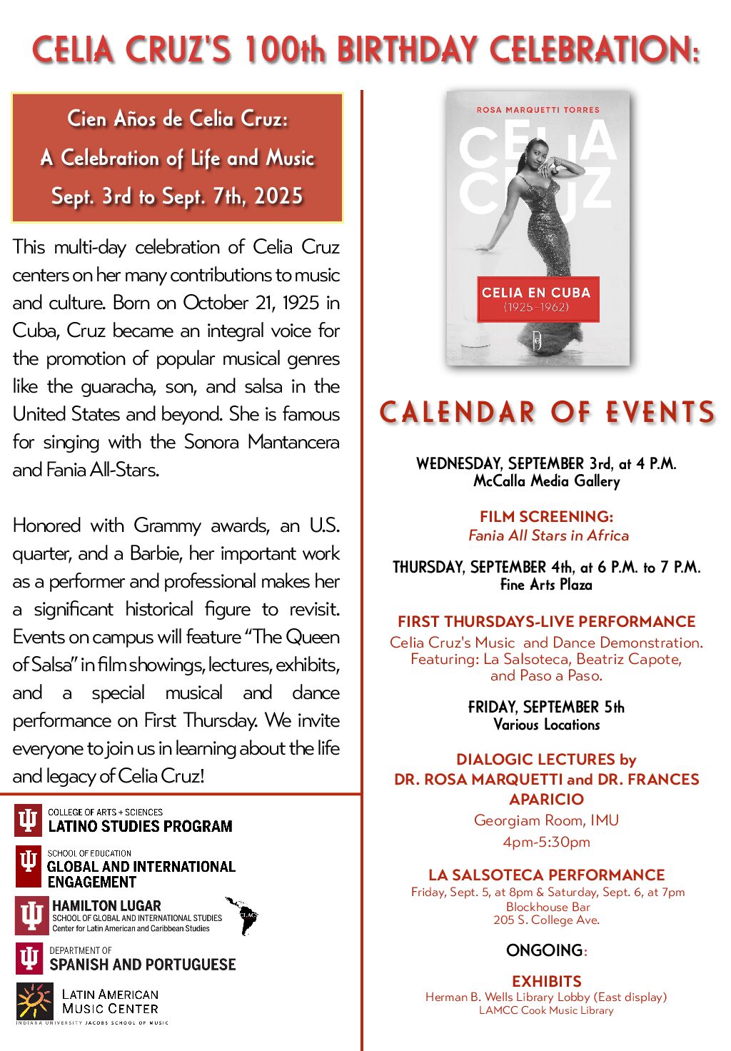 Read More »Hola Bloomington – celebración por 100 años de Celia Cruz con La Salsoteca y IU Latino Studies