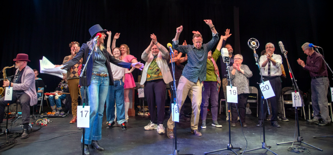 Celebrate Bloomington! Our November 2024 show, hosted by Yael Ksander, featured some great music, including an original song and a hilarious parody from the Four-Alarm Orchestra, and brand-new comedy sketches by the Mighty Firehouse Art Players. They presented some excerpts from filmmaker Werner Hedgehog’s documentary about the weird things in Bloomington, and they managed to combine 2024’s hit movies, “Barbie” and “Oppenheimer!”