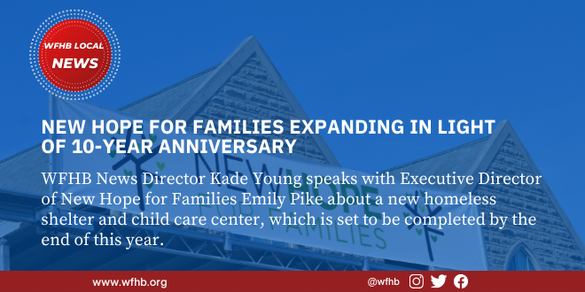 Later in the program, WFHB Correspondent Kade Young speaks with Executive Director of New Hope for Families Emily Pike about a new homeless shelter and child care center, which is set to be completed by the end of this year. That’s coming up in today’s feature report.
