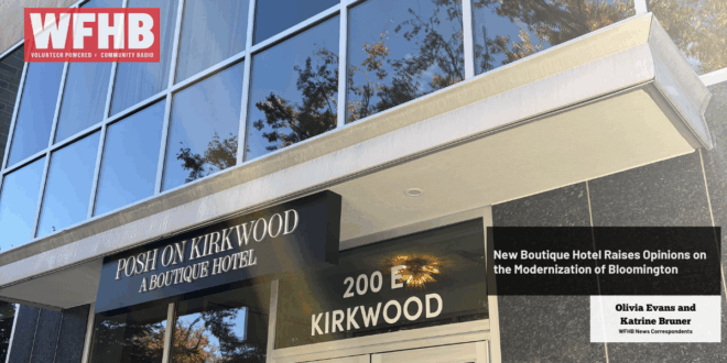 In today’s feature report, WFHB News Correspondents Olivia Evans and Katrine Bruner speak with local residents and hotel management about a new boutique hotel that has raised opinions on the modernization of Bloomington. That report from November 2025 is coming up next on the WFHB Local News.