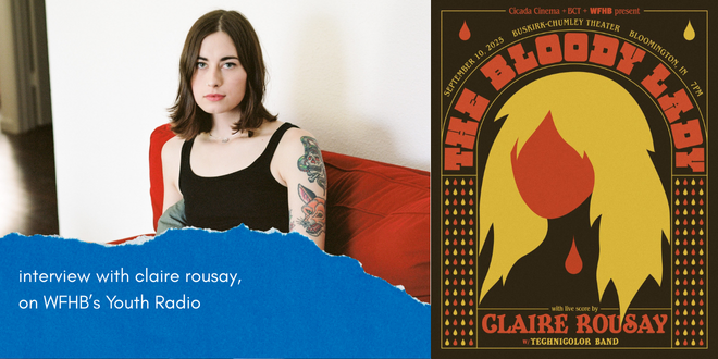 This interview features Jack from WFHB’s Youth Radio in conversation with Canadian-American musician and composer Claire Rousay. They discuss her experience re-scoring the 1980s Slovak animated film “The Bloody Lady.” Claire shares how she was approached for the project, her decision to use primarily piano and subtle sound manipulation to complement the film’s minimal animation style, and her intent to give viewers space for their own interpretations. She contrasts her approach with the original score, emphasizing a more understated and supportive musical role. Claire also reflects on how her personal circumstances and environment influenced her creative process, and she offers insights into her daily artistic practice and sources of inspiration.